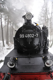 dampfende Fotos. Wir steigen in Baabe aus und laufen durch den