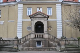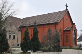kleine Alte Gymnasium, eine ehemalige Privatschule, die heute ein Spielzeuggeschäft und einen Installateur beherbergt. Gegenüber ist die erste von drei evangelischen Kirchengemeinden,