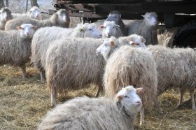 Dazu kommen noch die leichten, völlig unberührten Schneereste, die überall in den Unebenheiten liegen. Auf dem Weg stoßen wir immer wieder an Stellen, wo die DDR-Grenze verlief. Am Weg stehen zwei bestimmt 30 Jahre alte Windräder. Hinter einem Schafstall treffen wir eine Herde von Schafen,