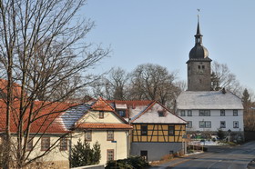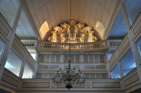 Fachwerkhäusern und Kirchen. Wir können nur die Johann-Sebastian-Bach-Kirche besichtigen, innen komplett Holz, auch das Tonnengewölbe, mit zwei seit 2002 wiederhergestellten Orgeln,