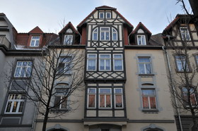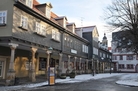 Der Weg ins Zentrum von Arnstadt führt erst an einigen schönen Villen vorbei, dann jedoch durch mehr oder weniger schön renovierte Plattenbauten über Stadtbrachen mit Parkplätzen, wie wir sie aus einigen ostdeutschen Städten kennen, und die entweder vom Krieg übriggeblieben, oder in der späten DDR durch Abriss verfallener Altbausubstanz entstanden sind. Die Altstadt