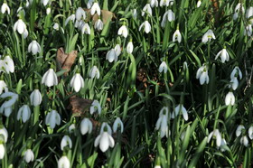 Direkt nach dem Frühstück besucht uns Bernhard Jepsen, der für das Weilheimer Tagblatt schreibt. Wir unterhalten uns ausführlich und angenehm. Unser Foto gefällt ihm so gut, dass er nicht mit uns auf den Berg fährt. Wir sind gespannt, was er aus den Informationen für den Hohenpeißenberger Lokalteil zusammenstellt. Marlis lässt den Redakteur nicht weg, ohne ihn zu interviewen: da er aus Peißenberg ist, gibts viele Infos, und die in Bayrisch. Schließlich sind wir ja in Oberbayern, besser noch: im Pfaffenwinkel. Auch Esther Gebhard, die Chefin der Villa Musica, muss auch Rede und Antwort stehen. Heute scheint die Sonne, es ist fast frühlingshaft. Wir laufen über Wiesen, Feldwege und den König-Ludwig-Weg zu Johannes Elternhaus im Ortsteil Klausen. Wir sehen das alte, aber mehrfach umgebaute und erweiterte Haus nur von außen, es ist niemand zu Hause. Im Garten ist ein ganzes Feld blühender Schneeglöckchen.
