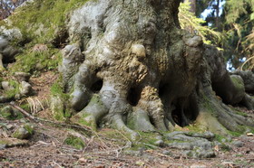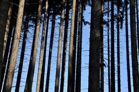 Da läuft auch ein Weg vorbei hoch in den Wald; der dürfte auf den Hettenweg führen, den dritten Fußweg von Nordwesten nach oben. Wir folgen dem Weg meistens, aber wo uns die Bogen zu weit sind, gehen wir die Direttissima nach oben auf weichem Waldboden unter Fichten