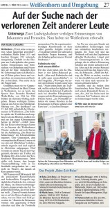 Das war jetzt aber noch das i-Tüpfelchen auf die Weißenhorn-Reise. Ein Artikel in der NUZ! Ich darf nun sicher sein, daß Ihr diesen Abschnitt eueres großen Deutschlandabenteuers BAHN-ZEIT-REISE nicht bereut, geschweige denn in negativer Erinnerung behalten würdet. An diese Möglichkeit habe ich auch zu keiner Zeit gedacht.