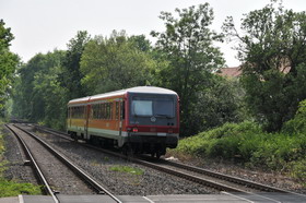 Am Nachmittag starten wir über Neustadt nach Deidesheim. Auf der eingleisigen, nicht elektrifizierten Weinstraßen-Strecke fahren noch die alten Dieseltriebwagen wie vor 20 Jahren, die uns sonst nur noch selten begegnen. Wir laufen zum Hofgut Ruppertsberg am nördlichen Ortseingang. Auf diesem kurzen Weg finden wir eine versteckte Kneipe mit einem eingewachsenen Kaiserslautern-Wegweiser,