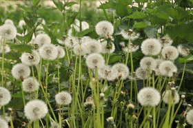 Überall ist der Löwenzahn verblüht, zwischen den Rebenzeilen sind endlose Flächen mit Pusteblumen zu sehen.