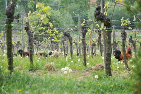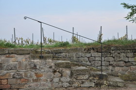 der Gäste herum und krähen, die Treppe geht direkt in die Weinberge und zum etwas verfallenen Weinberghaus.