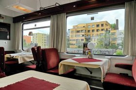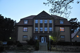 Die bevorstehende Fahrt ist lang, wir stehen etwas früher auf. Klaus schickt uns nach Usedom. Ich habe noch stramme Termine vorher, es klappt alles, auch das Holen der Reiseführer aus der Bibliothek und die S-Bahn-Fahrt nach Mannheim. Dort starten wir um 10:31. Die Anfahrt ist lang: über Berlin und Züssow nach Kölpinsee, 876 km in 8,5 Stunden, die Anschlüsse funktionieren. Wir sind, wie immer nach Tagen zu Hause, an denen einiges zu erledigen war, recht müde, und nutzen die Zugfahrt zum Schlafen, Lesen, Nacharbeiten. Dafür könnte die Fahrt ruhig noch länger sein! Der ICE ist überraschend voll, auch in den hinteren Wagen; in Berlin ist irgendein Sportwettbewerb, zu dem Schülergruppen unterwegs sind. So ergattern wir geradeso Platz an einem Tisch, allerdings nicht alleine, so können wir uns nur auf einem zusätzlichen Platz ausbreiten. Geräumiger ist es in dem schon bekannten tschechischen IC von Wien, den wir schon einmal von Berlin nach Eberswalde hatten. Damals – kaum zwei Monate her – war noch alles weiß und die Seen gefroren. Jetzt grünt es, unser zweiter Frühling: alles, was bei uns schon längst komplett aufgegangen ist, fängt hier erst an: Kastanien, Ginster und Birken beginnen zu blühen, Buchen falten sich auf. Je weiter nach Osten, umso mehr zurück ist die Vegetation. Es ist überwiegend sonnig, eine sehr schöne Fahrt. Nördlich von Berlin gibt es riesige blühende Fliedersträucher, ganze Böschungen voll. Und: jetzt ist es hier solange hell wie bei uns: im Sommer sind die Tage länger, je weiter im Norden, das gleicht am Abend die Verschiebung nach Osten aus. Im Winter waren die Tage hier extrem kurz, wir erinnern uns an Rügen Anfang Januar. Im etwas nostalgisch ausgestatteten tschechischen Speisewagen trinken wir wieder ein Kozel-Bier. Das letzte Stück ab dem kleinen Umsteigebahnhof Züssow – hier in der Uckermark ist alles dünn besiedelt – fährt die Usedomer Bäderbahn mit modernen Dieseltriebwagen. Erst seit 2000 ist die Verbindung wieder durchgehend über den Peenestrom auf die Insel, und seit 2007 geht es bis aufs polnische Inselende in Swinemünde am Oderdurchfluss. Die Schaffnerin betont, dass erst seit vorigem Jahr die Bahncard100 anerkannt wird, aber für Fahrräder müssten wir bezahlen. Die UBB ist zwar eine Bahntochter, aber was besonderes. Wir steigen in Kölpinsee aus und laufen ein paar Meter zu unserem ausgesprochen sauberen Hotel Seeschösschen, wo man uns sehr aufmerksam und namentlich begrüßt. Wir essen etwas und laufen in der Dämmerung in das Örtchen Loddin, wo wir morgen genauer forschen werden, ans Achterwasser, der von der Insel eingeschlossene landseitige Meeresteil. Hier ist es richtig kalt, das wussten wir schon: Vielleicht 4 Grad, am Tag erwartet man hier 9 bis 12, gegenüber 19 bis 24 Grad in Ludwigshafen. Es ist alles entlang der Straße locker bebaut, maximal zweieinhalbstöckig. Fast alles ist recht neu, mindestens renoviert, überall gibt es Ferienwohnungen, zu dieser Jahreszeit zu über 90% frei. Das sieht sehr nach mit der Zeit gewachsenem Überangebot aus. Einzelne Häuser zwischendurch sehen gepflegt, aber seit DDR-Zeiten unrenoviert aus. Dieser dunkelbeige Putz stört hier nicht so stark, weil er nicht wie anderswo durch Industrie schwarz-dreckig geworden ist. Unterwegs treffen wir auf das alte Schulgebäude, der erste Kontakt mit dem Lehrer Leopold, nach dem wir morgen genauer suchen. Am Achterwasser finden wir den gesuchten Melleweg. Das Haus aus DDR-Zeiten um 1960, das es bestimmt so nicht mehr gibt, werden wir morgen versuchen zu identifizieren. Wir schauen uns die Lokale an, die in den Reiseführern genannt werden. Da bleibt zu dieser Jahreszeit mit dem wenigen Betrieb nur der Waterblick, ein Feinschmecker-gelobtes Fischrestaurant, das überraschend preislich nicht so auffällt und als einziges etwas belebt ist. Zum Tippen reicht es nicht mehr, wir sind müde und schlafen nach etwas Fernsehen gleich ein.