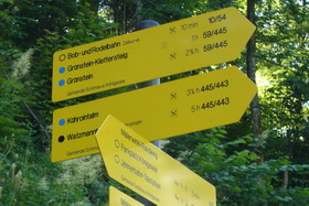 die im Moment wegen Erweiterung Baustelle ist. Der Weg ist breit, eben und gleichmäßig steil. Wir sind so gut wie allein, der Wald schützt vor der Sonne, die Abkühlung durch den Höhengewinn gleicht die Erwärmung am Tag aus.Wir passieren die Abzweigungen zum Grünstein,
