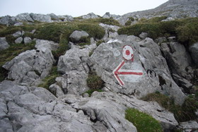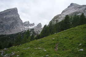 ein. Als wir nach einer Stunde weitergehen, ist die Sonne fast ganz verschwunden. Unterhalb des Watzmannkar nähern wir uns in steinigem Auf und Ab durch grünen, lichten Wald