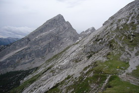 wo wir seilgeführt durch die Flanke des Hauptkamms auf die Falzalm