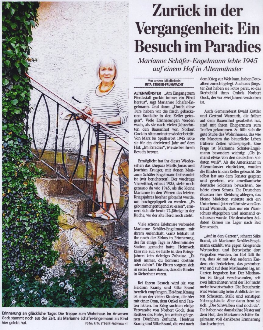 Mitte Juli ist in der MainPost ein Bericht zu den Folgen unseres kurzen, aber sehr intensiven Besuchs in Altenmünster bei Schweinfurt am 4. Februar erschienen: Die Ideengeberin, Marianne Schäfer-Engelmann, hat sich vor Ort mit allen getroffen.