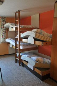 Viererzimmer mit zwei Stockbetten und Waschräume, freundlich gemacht, aber einfach, so ähnlich dürfte es schon vor 50 Jahren gewesen sein. In der Viertelstunde, die wir Zeit haben, bekommen wir noch alte Postkarten gezeigt, sie erzählt uns, dass auch Ehemaligentreffen von heute 70-jährigen hier stattfinden.