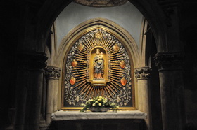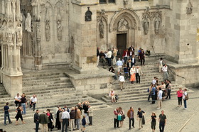 Kirchenfenstern, die in der Sonne wie Leuchtkästen strahlen, und den dunklen Steinen. Zum Abschluss kehren wir in der Wurstkuchl ein