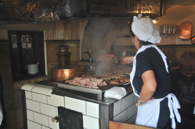 ein kleines Gebäude, das schon beim Brückenbau als Kantine gedient haben soll, und nur hausgemachte kleine Bratwürste auf Kraut serviert,