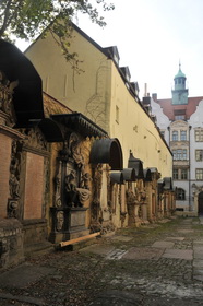 des immerwährenden Reichstags, bestehen aus einer Wand mit 20 großen Epitaphen. Einen Besuch des früheren Klosters und heutigen Schlosses und Kommerz-Zentrums der Thurn und Taxis schenken wir uns, wir streifen weiter durch die Gassen, besuchen ein Café und besichtigen die prächtige, innen barocke