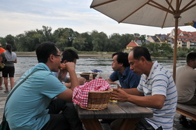 natürlich mit Bier oder Wein. Sowas geht nur hier mit dem historischen Hintergrund. Von der Brücke