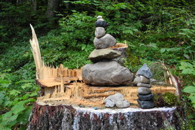 Wir werden direkt nach dem Frühstück von unseren Verwandten Peter und Christine, die wir schon früher in Lechbruck besucht hatten, mit dem Auto abgeholt. Sie haben sich eine Wandertour ausgesucht und fahren mit uns nach Oberammergau und ein Stück Richtung Kolbenalm. Wir steigen im Hang