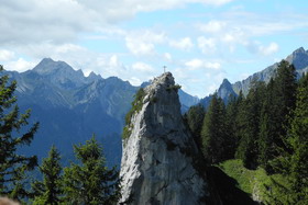 des Latschenkopfes, nach Norden vor uns der Teufelstättkopf, den wir auch besteigen. Wir haben eine grandiose Sicht.