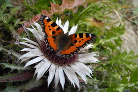 und viele schöne Wolken am sonst tiefblauen Himmel. Auf den breiten Wegen, auf denen wir uns gut unterhalten können,