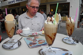 Christkindlmarkt im Sommer angeboten. Durch die Passionsspiele scheint das hier zum internationalen Ziel geworden zu sein, mit allen Übertreibungen. Das Eiscafé,