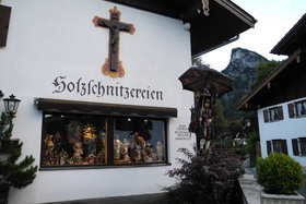 in die Ebene nicht so im Weg. Wir steigen auf ähnlichem Weg wieder ab und fahren nach Oberammergau hinein. Was wir sehen, ist bayerisch bunt angemalt und sehr touristisch; die Herrgottschnitzer