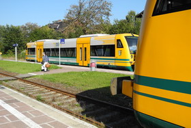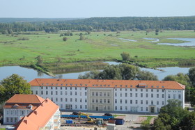 Wir stehen früher auf, der Bahntakt von zwei Stunden sorgt dafür, wir wollen schließlich noch was sehen. Blauer Himmel begrüßt uns, der Chef des Hauses erklärt uns die Wintersportaktivitäten des Ortes im Skispringen, er hat den Verein gegründet. Neben den vier Schanzen, die wir gestern abend gesehen haben, gibt es die Planung für zwei Großschanzen, die ist immer noch aktuell. Fünfmal in der Woche wird auf den Schanzen trainiert, Schnee braucht man dazu nicht: Keramik-Anlaufspur, Matten-Landebereich, Rasenauslauf. Die letzte Sprungveranstaltung war am 21. August. Heute geht es nach Lübbenau im Spreewald. Die Umsteigestationen bieten sich für Stadtrundgänge an: Frankfurt/Oder und Cottbus. Frankfurt präsentiert sich nicht besonders attraktiv: Gründerzeithäuser, zu 70% saniert, nur in der Süd-Vorstadt und hinter dem Bahnhof, da findet gerade ein “Altstadt”-Fest statt, eher müde und klein. Die Stadt selbst wird überragt von großen Plattenbauten,