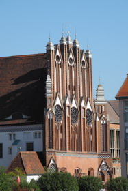 eine sehr schöne Backstein-Fassade, die 1991 wiedergegründete Europa-Universität Viadrina nutzt alte Gebäude als Hauptgebäude und Bibliothek, und eine echte Sehenswürdigkeit ist die größte Backsteinkirche des Nordens, St. Marien, die nach dem Krieg eine Ruine