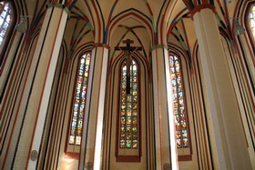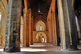 kommen die Säulen und die Halle der gotischen Kirche monumental zur Geltung, auch wenn das Dach heute aus Holz ist. Der Chor und die Sakristei