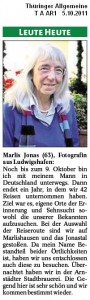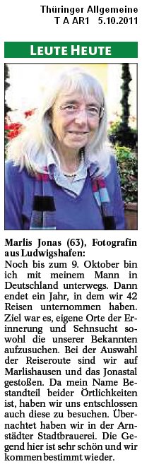 Die Thüringer Allgemeine hat in ihrem Arnstädter Teil unter “Leute heute” einen kurzen Text über unser Projekt und den Besuch im Jonastal veröffentlicht: